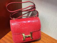 エルメススチュワーデスバッグサイズエルメスコンスタンス18CMCK95フェラーリレッドシャイニークロコダイルレザーゴールドバックル