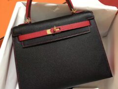 エルメスケリー25CMエルメスカラーブロックケリーバッグCK89ブラック/フラッグレッドエプソムレザーゴールドバックル