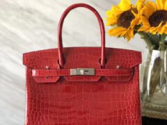 エルメスバーキン25cmエルメスチャイナレッドシャイニークロコダイルレザープラチナバックル