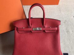 エルメスニューレディースバッグエルメスプラチナバッグQ5フラッグレッドトーゴカーフスキンバーキン25cmシルバーバックル