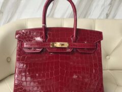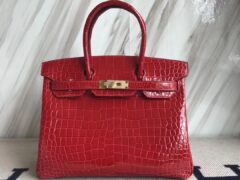 エルメスバーキンバッグエルメスシャイニークロコダイルレザープラチナバッグBirkin30CMCK95フェラーリレッドゴールドバックル