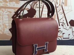 コンスタンススチュワーデスバッグ24CMエプソムCC55エルメスレッド/ダークブルーエナメルバックル(限定版)