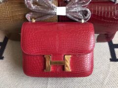 エルメスコンスタンスバッグエルメスコンスタンス18cmA5カッコウレッドシャイニークロコダイルレザーゴールドバックル