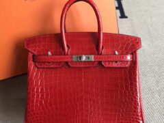 エルメスニュープラチナバッグエルメスバーキン25cmCK95フェラーリレッドシャイニーツーポイントクロコダイルレザーシルバーバックル
