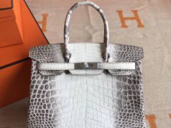 エルメスバーキンレディースバッグエルメスライトグレー光沢のあるクロコダイルレザーBirkin25プラチナバッグシルバーバックル