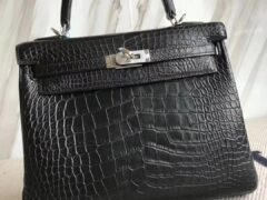 エルメスケリーレディースバッグエルメスオリジナルマットクロコダイルスキンケリーバッグKelly25CMck89ブラックシルバーバックル