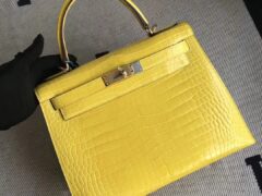 エルメスケリーレディースバッグエルメスシャイニーベイクロコダイルスキンケリーバッグKelly25CM9Dアンバーゴールドバックル