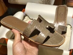 エルメスサンダルエルメスエレファントグレー輸入クロコダイルレザーレディーススリッパ35-41
