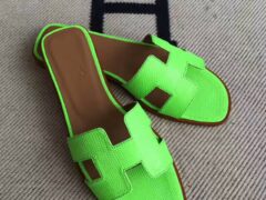 エルメスの新しいスリッパエルメス6Rキウイフルーツグリーン輸入トップトカゲの皮の女性用スリッパ35-42ヤード