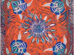 エルメスクラシックエクスプローシブシルクスクエアスカーフ「フラワーオブ南アフリカ」90X90cmオレンジレッド100%マルベリーシルクレディーススカーフ