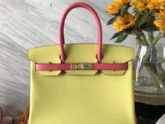エルメスカラーマッチングプラチナバッグエルメス9Rレモンイエローと8WリップスティックパウダーエプソムレザーBirkin30CMゴールドバックル
