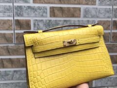 エルメスミニケリーバッグエルメスミニケリークラッチ9Rレモンイエローマットクロコダイルレザーゴールドバックル