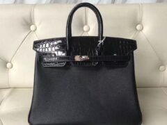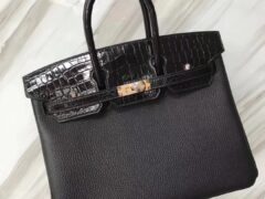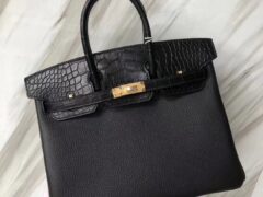 エルメスタッチシリーズプラチナバッグBirkin25CMck89ブラッククロコダイルレザーとトーゴレザーローズゴールドバックル