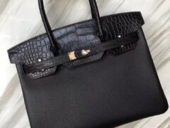 エルメスバーキンサイズエルメスバーキン30CMブラックスウィフトレザーとクロコダイルレザーローズゴールドバックル
