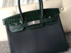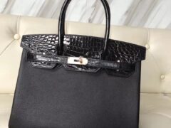 エルメスバーキン30CMエルメスブラックシャイニークロコダイルレザーとトーゴレザープラチナバッグローズゴールドバックル