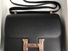 エルメスバッグ公式サイトエルメスCK89ブラックオリジナルエプソム牛革スチュワーデスバッグローズゴールドバックル