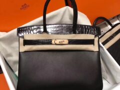 エルメスバーキンバッグエルメスブラックスウィフトレザーと光沢のあるクロコダイルレザープラチナバッグBirkin35CMローズゴールドバックル