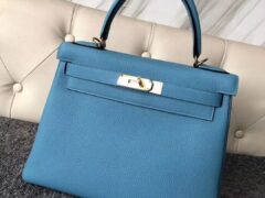スポットエルメスケリーバッグ価格エルメスケリー28CMCK75デニムブルーカーフスキンゴールドバックル