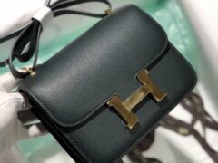カスタムエルメスコンスタンスバッグエルメスオリジナルイブカラーレザー2Qタイタングリーンコンスタンス18cmゴールドバックル