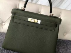 スポットエルメスレディースバッグ卸売エルメスV6オリーブグリーントーゴカーフスキンケリーバッグKelly28CMゴールドバックル