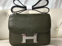 エルメスコンスタンス19CMエルメスオリーブグリーン輸入リザードスキンコンスタンススチュワーデスバッグシルバーバックル