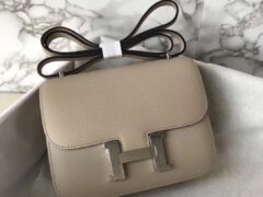 広州バッグ卸売エルメスエルメスコンスタンスバッグS2ウィンドブレーカーグレーオリジナルパームグレイン牛革Constance19CMシルバーバックル