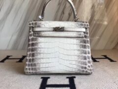 エルメスケリー25CMエルメスヒマラヤクロコダイルレザーケリーバッグ、シルバーバックル、股下付き