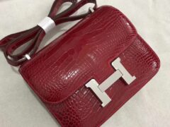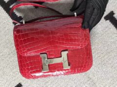 エルメスコンスタンス18CMエルメスQ5チャイナレッドシャイニークロコダイルレザースチュワーデスバッグシルバーバックル