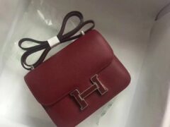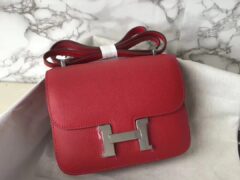 エルメスコンスタンス19CMエルメスQ5フラッグレッドオリジナルエプソムレザースチュワーデスバッグシルバーバックル