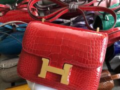 スポットエルメスコンスタンスバッグエルメスコンスタンス18CMCK95フェラーリレッドクロコダイルレザーゴールドバックル/シルバーバックル
